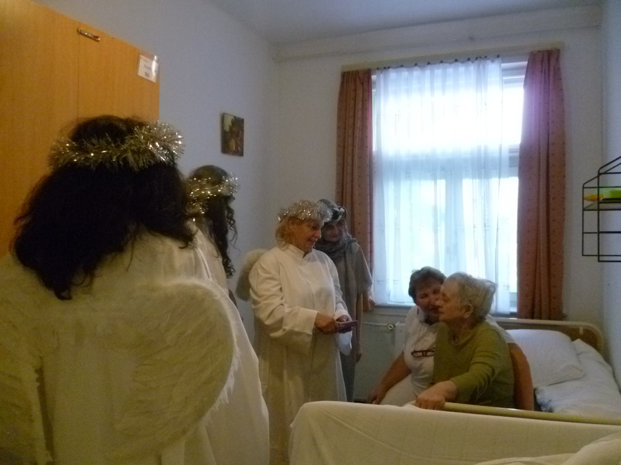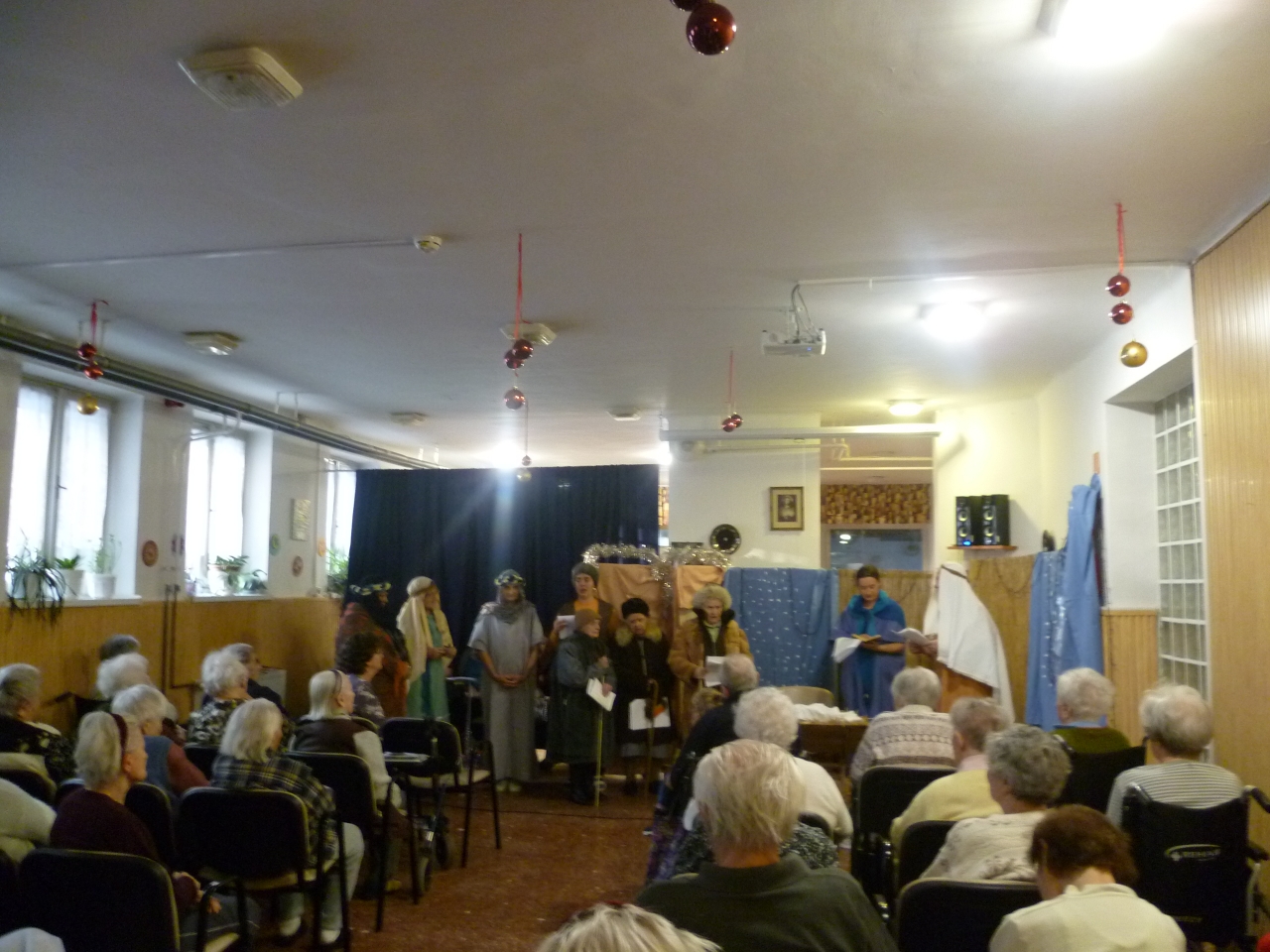 Pásztorjátékkal ünnepeltük az idei Karácsonyt, melyben lakóink is több szerepet játszottak. Az Ács család szolgáltatta a zenét, sok hagyományos éneket énekeltünk közösen. Több kisgyermek is itt volt, jelenlétükkel családias hangulatot teremtettek. A műsor az angyalok bejövetelével zárult, ami megható befejezése volt az ünnepségnek. Később az „Angyalok” - karácsonyi énekeket énekelve kiosztották az ajándékokat a fekvő lakóinknak is, amivel nagy örömet és meghatódottságot okoztak. Az ajándékok kiosztása után az éjféli mise hangulatát felidéző koncertet adott Ács Dávid és testvére, Ádám.