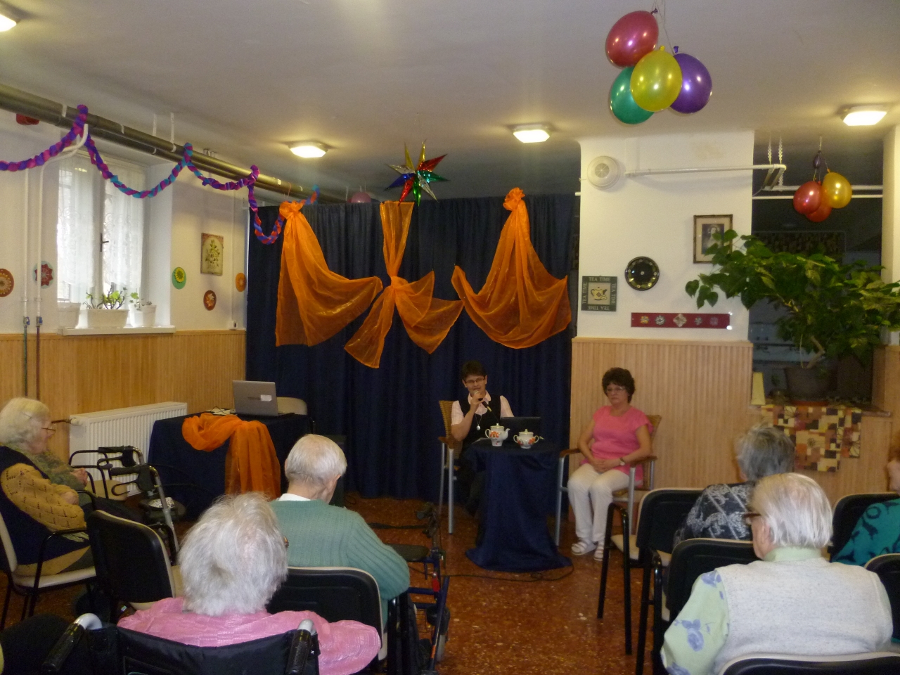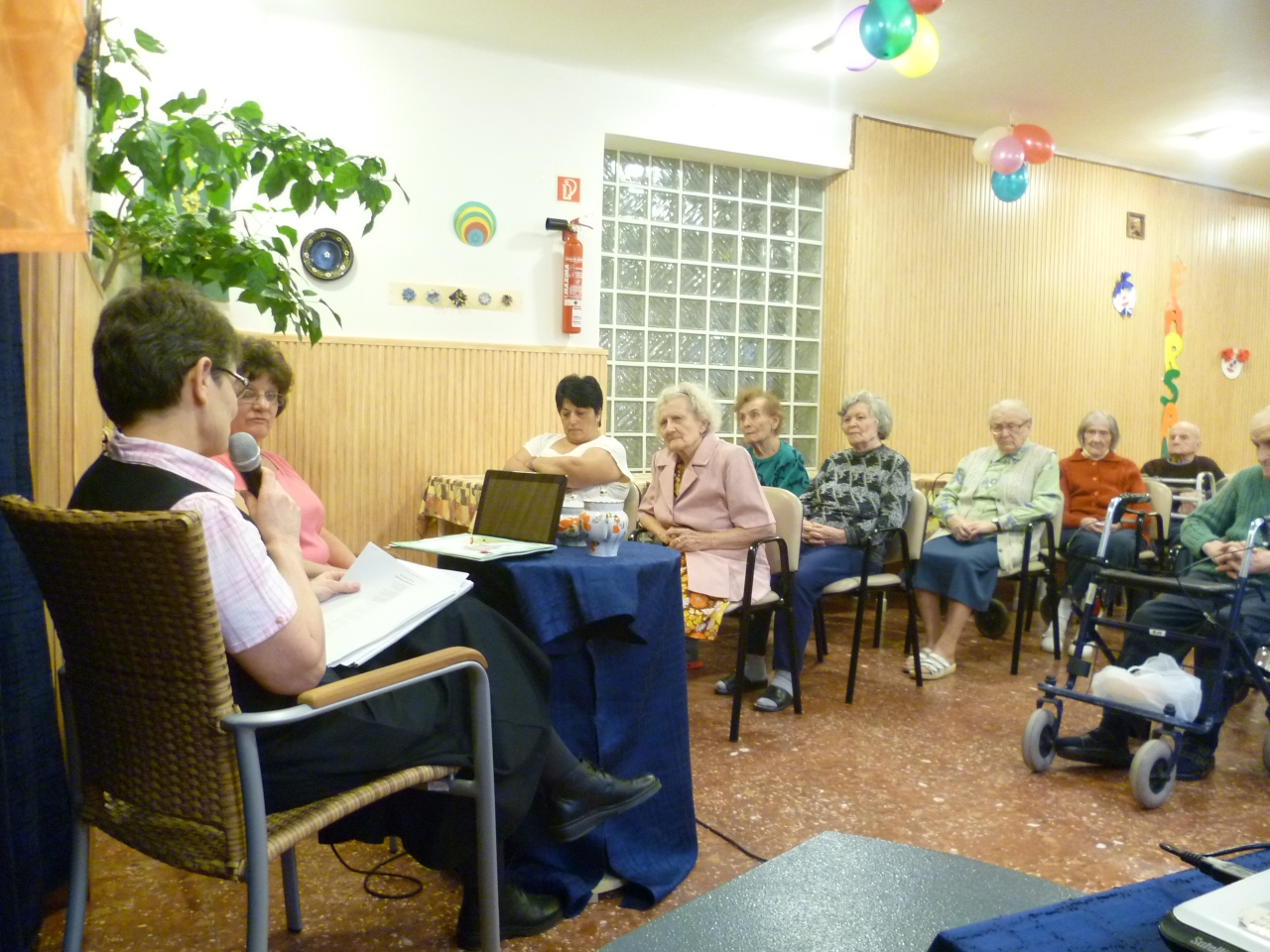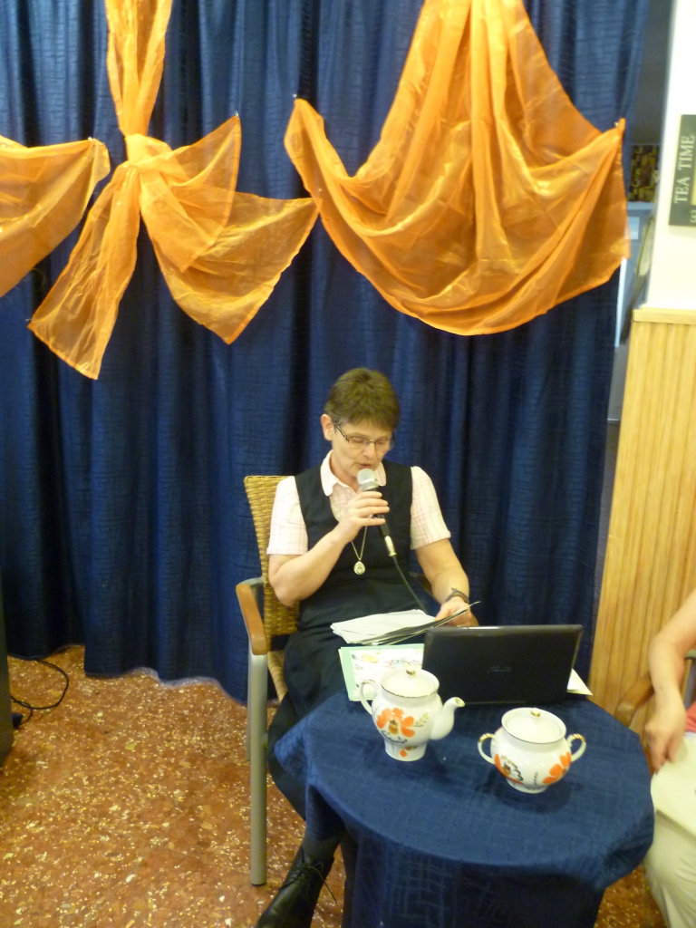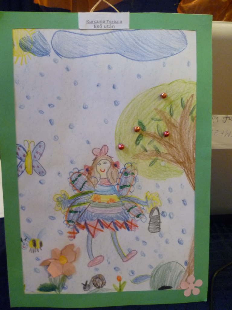 Nagyon jó hangulatú irodalmi délutánt tartottunk, Kurczina Teréz SJC olvasta fel verseit. Többet megzenésített változatban is hallottunk. A délután két részből állt, az első részben gyerek versek hangzottak el. A költeményekhez grafikus művészek illusztrációt is készítettek. A rajzokat a költeményekhez kapcsolódóan meg is néztük, így teljesebb volt az élmény. Különösen az a rajz tetszett mindenkinek, amely egy óvodai rajz verseny nyertes képe, és az „Eső után” című vers ihlette: