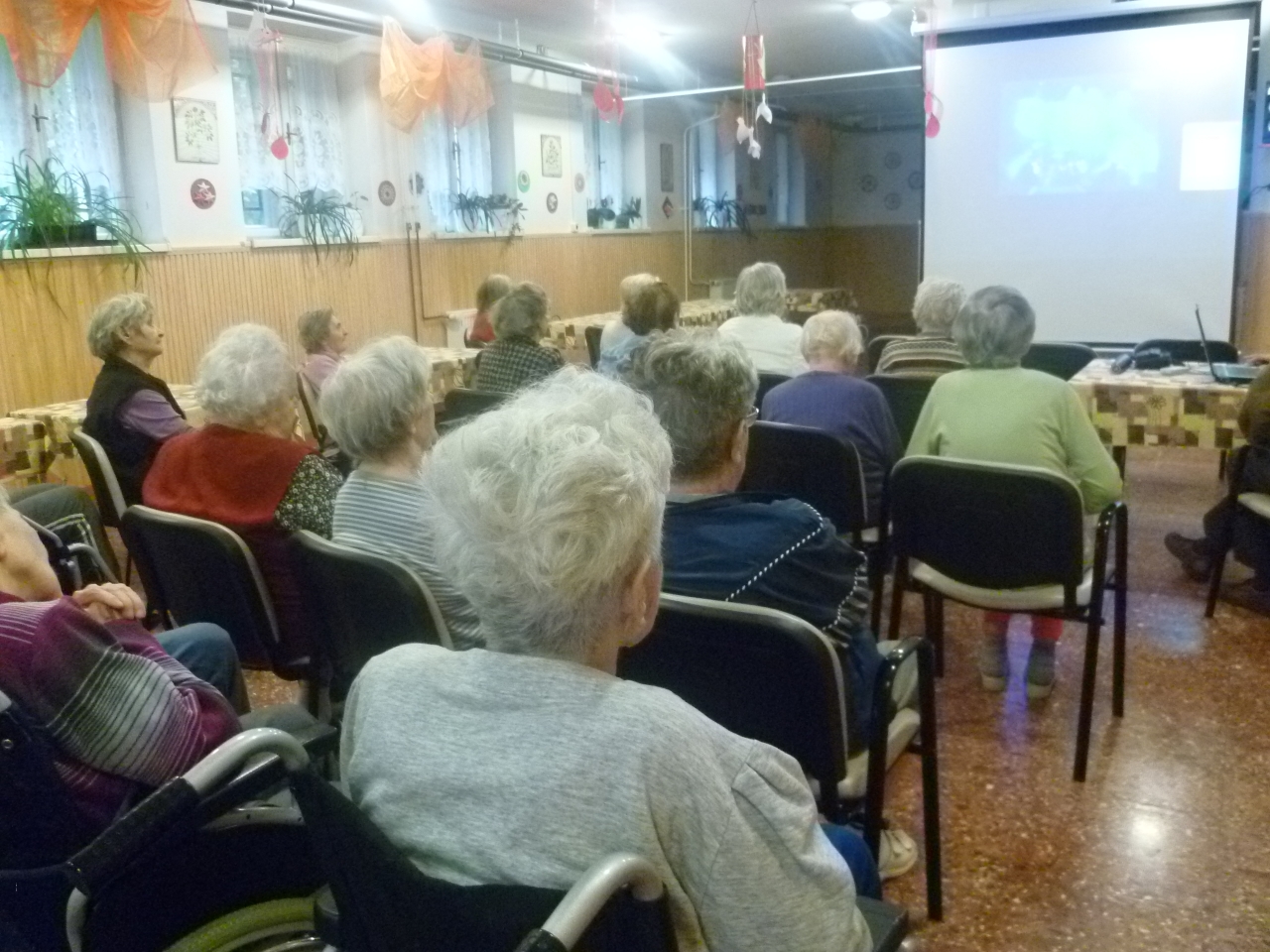 Énekes László, egyik kedves lakónk hozzátartozója. Ismét zenés filmvetítést tartott Otthonunkban. Régi operett jelenetek, slágerek, magyar nóták csendültek fel. Vidám délelőttöt szerezve ezzel lakóinknak.