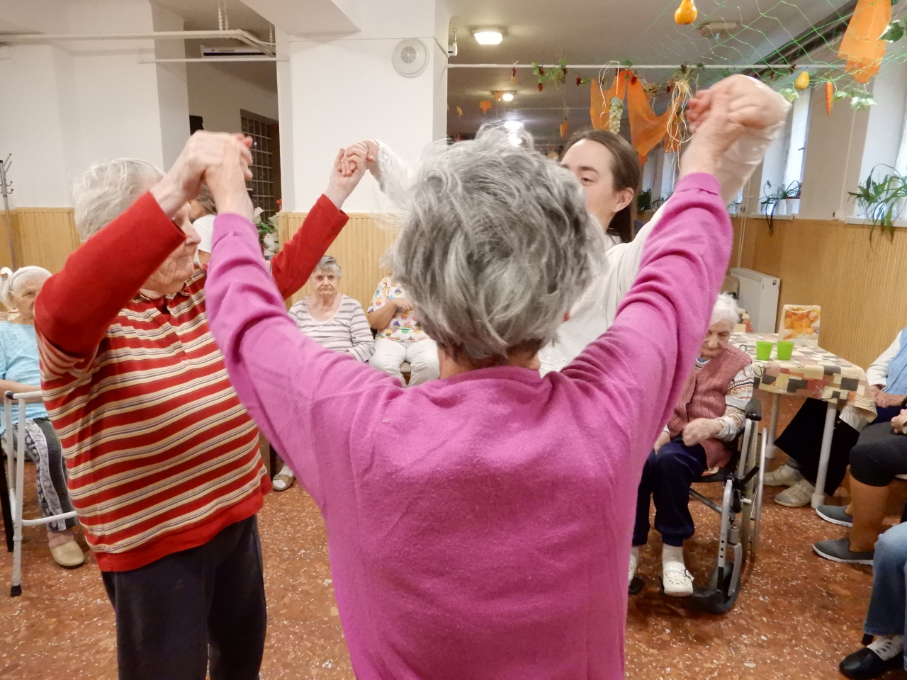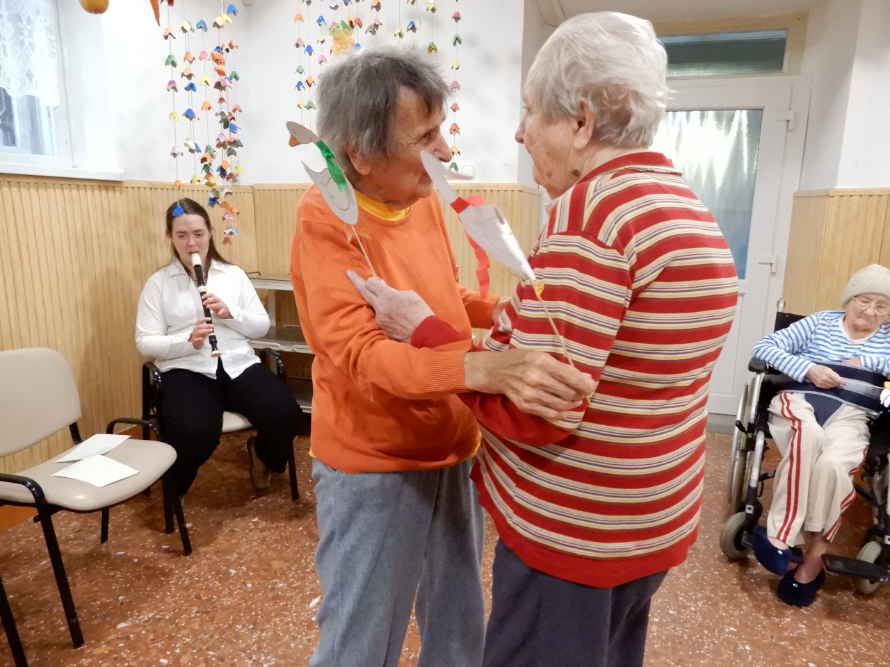 Az Otthon lakóival délelőtt megünnepeltük Márton napját libanótákkal, tréfás mondókákkal. Egy kevés újbor is akadt a jókedv fokozása érdekében. Énekkel, tánccal köszöntöttük az ebédre várt libapecsenyét, ami igazán kitűnőre sikerült mindannyiunk nagy örömére!