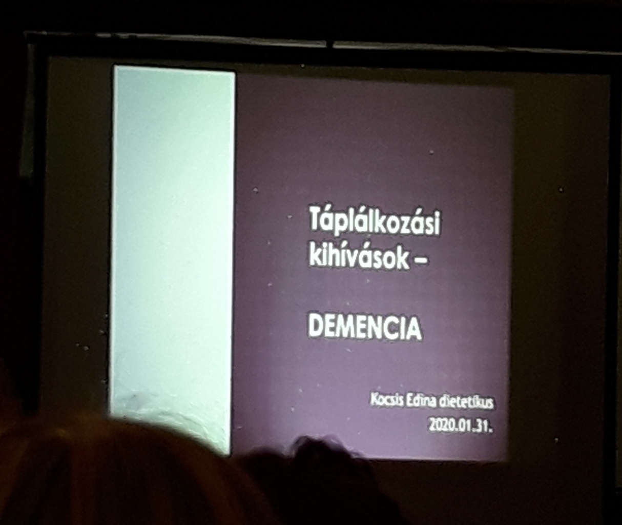 2020. január 31-én a Kúria Rendezvényházban Kocsis Edina tartott előadást a demenciában szenvedők helyes táplálkozásáról. Edina a dabasi Katolikus Szeretetszolgálat Zárdakert Idősek Otthonának intézményvezetője. A szociális szakma minden ágában professzionális munkát végez már 28 éve. Szenvedélye a dietétika, ezen belül a fekvőbetegek és a súlyos demenciával élők, illetve az Alzheimer-kórban szenvedők helyes táplálása. Sok hasznos gyakorlati tanácsot adott a megjelenteknek. Az előadás végén személyesen is elbeszélgetett a hozzá fordulókkal. Több szó esett a megelőzésről, a helyes táplálkozás fontosságáról is.