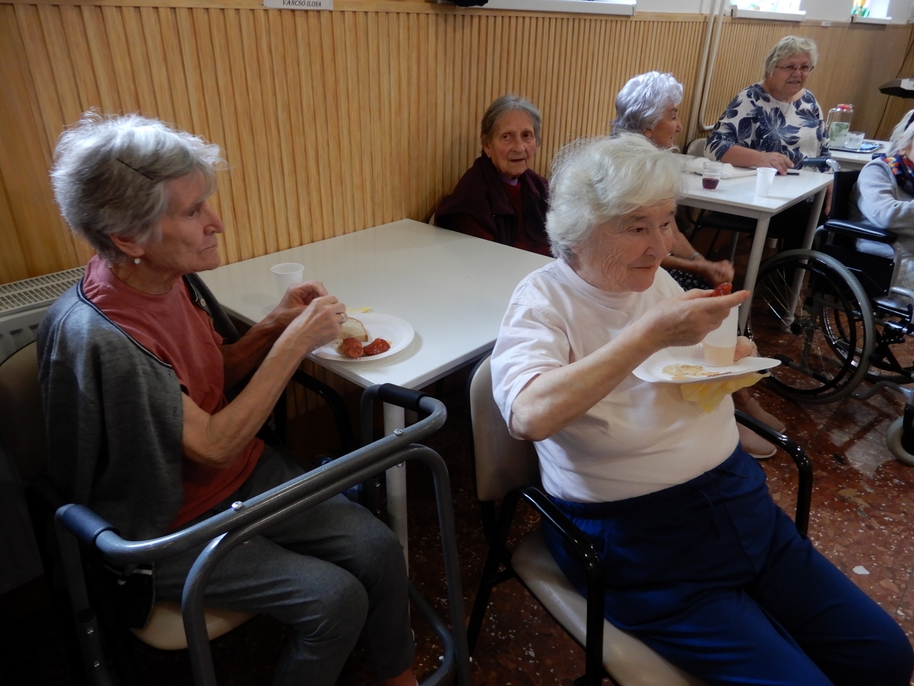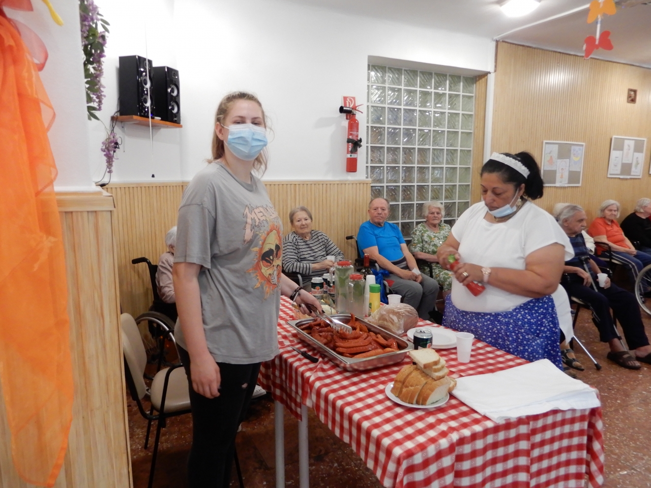 Hagyományainkhoz híven nem maradt el a finom, forró sült kolbász, a hideg sör sem. Az ízletes uzsonna után Zoli zenéjére lakóink, dolgozóink fergetegesen jót táncoltak, így mindenki szép élményekkel gazdagodhatott.