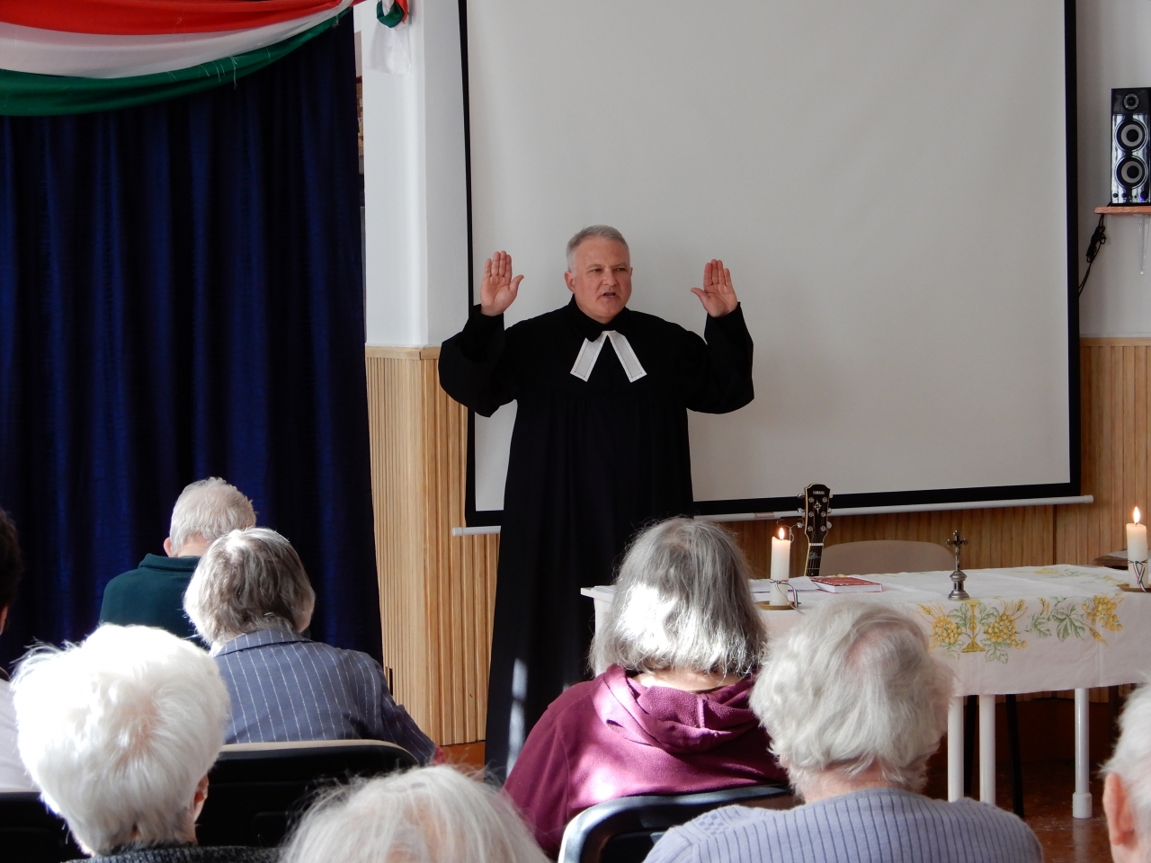 Újra eljött hozzánk a Babtista Egyház képviseletében Uzonyi Barnabás, aki az idők jeleiről beszélt nekünk, melyeket Isten, mint szerető atya azért adott, hogy ne féljenek azok, akik Őhozzá tartoznak. A keddi napon Iványi Zoltán, metodista lelkész látogatott meg bennünket, aki kiemelte, hogy ahol Jézus megjelenik, ott mindig valami felbolydul, mert a személye mellett nem lehet közömbösen elmenni. Csütörtökön Baranka György, evangélikus lelkipásztor jött el hozzánk. Beszédében rávilágított a böjt lényegére: kiszólít a magunk felé irányuló cselekvésekből és arra hív, hogy mások felé forduljunk. Ebben, a magunktól való eltávolodásban találjuk meg Istent, aki elmondja nekünk – ha elég figyelmesek vagyunk, - hogy mi az Ő elképzelése, szeretet-terve életünkben. A záró alkalomra Gyümölcsoltó Boldogasszony napján került sor, melyet Berta László plébános atya tartott meg. A központ gondolat itt az volt, hogy a napkeleti bölcsek miután hódoltak Jézus előtt más úton tértek vissza otthonaikba. Ugyan az a fény, ami elkísérte őket. Betlehembe mutatott egy másik utat, amin életüket folytathatják, mintegy megtérésre vezette őket. Bennünket is erre hív a nagyböjt, mérlegeljük: jó az az út, amin eddig haladtunk, és jó célt választottunk-e magunknak? Minden imaalkalom - akár egy virág - az Isten iránti szeretet egy-egy szirmát bontotta ki számunkra. Ezt a sok szirmot a Szentháromságban való hit és Jézus Krisztus elfogadása kapcsolja össze és teszi egy egésszé. Köszönjük a lelkészeknek és a plébánosunknak, hogy értékes gondolataikat megosztották velünk.