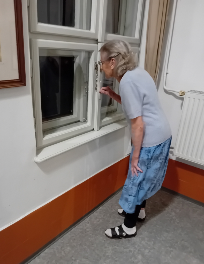 Lakóink közül is többen csatlakoztak a felvonuláshoz, volt, aki hozzátartozói kísérettel tette meg a rövid sétát a fények között. Akik egészségi állapotuk miatt nem tudtak lejönni az udvarra, ők ablakaikból gyönyörködhettek a lámpások meghitt fényében és a közösség örömében.