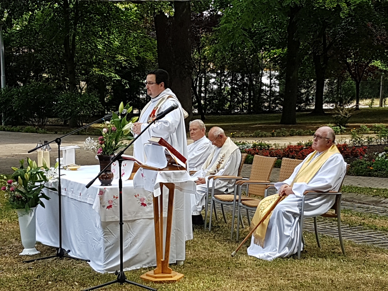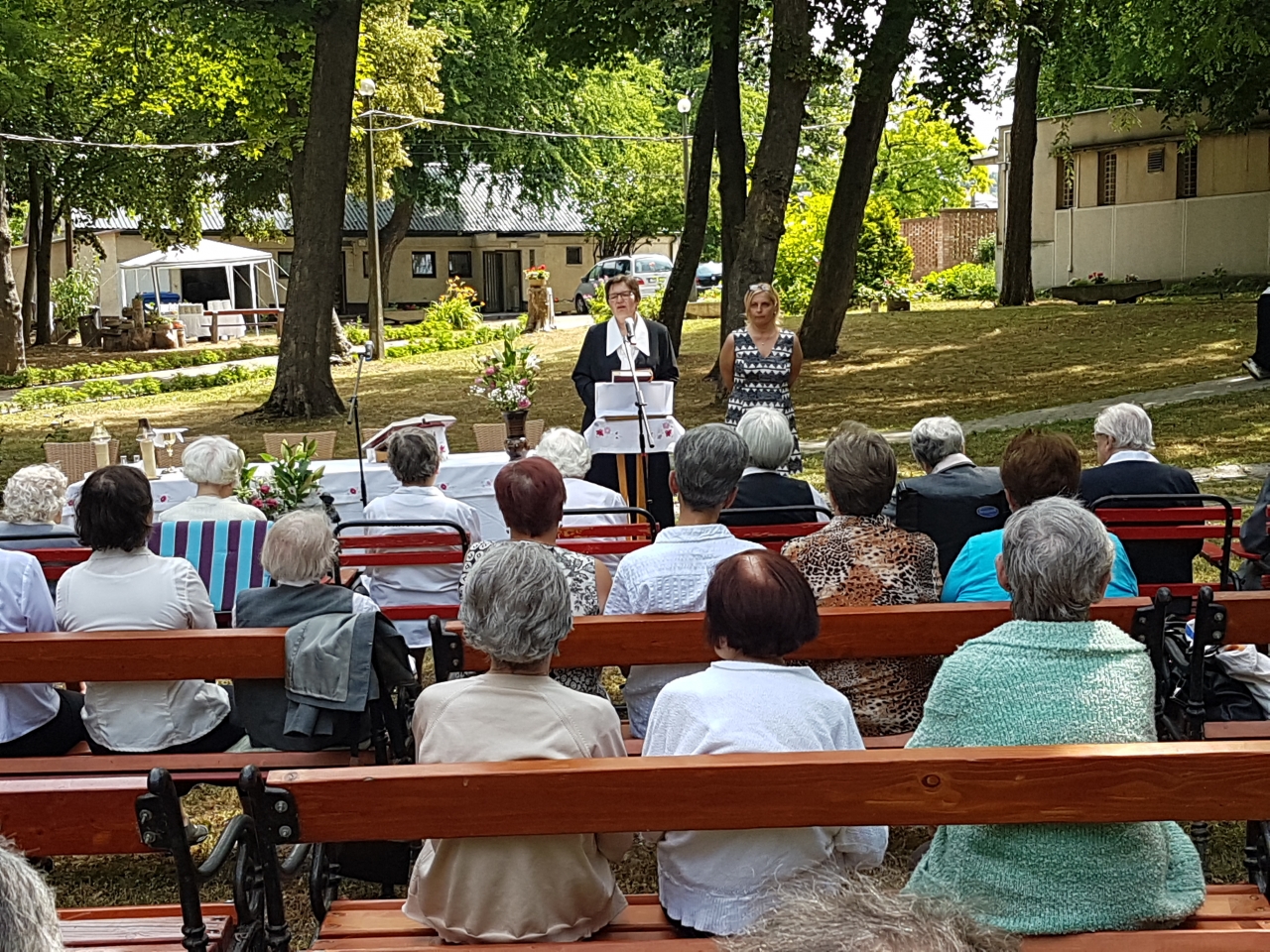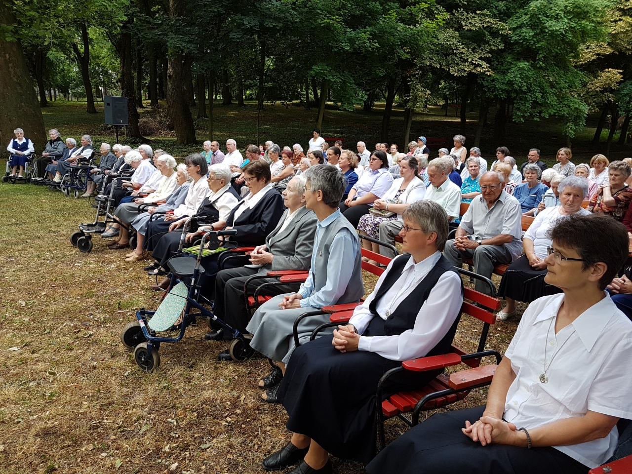 A Jézus Szíve Társasága egyik legfontosabb ünnepe a Jézus Szíve napja. Szabadtéri szentmisével ünnepeljük ezt a napot, melyen a Társaság tagjai, meghívott vendégeink, lakóink és munkatársaink is részt vettek. Az alapító Páter Bíró atyát követően Lafranco Margit testvér folytatta a megkezdett munkát egészen 1945-ben bekövetkezett tragikus haláláig. Ő 125 évvel ezelőtt született. Az ünnepi szentmisét Molnár Miklós atya mutatta be, aki Margit testvér rokona. Koncelebrált Benke István és Hupka József atya, akik évközben lakóinknak a miseszolgálatát látják el. Intézményvezetőnk Vancsó Ilona SJC beszédében megemlékezett a múltról, a Társaság péceli szolgálatának 1927 -es kezdetéről, a Főépület 1937-es alapkőletételéről. Ezen kívül kiemelte az Otthont segítők munkájának fontosságát. Az ünnep fényét emelte a Coelestis Regina énekkar, Ács Dávid, Ács Monori Judit, és Péter Almási Fruzsina szép zenével, énekkel. Ez úton mi is köszönjük minden dolgozónknak és önkénteseinknek, hogy az Intézmény legjelesebb ünnepét mindig széppé teszik. Az ünnepséget a kertben elfogyasztott finom ebéddel zártuk.
