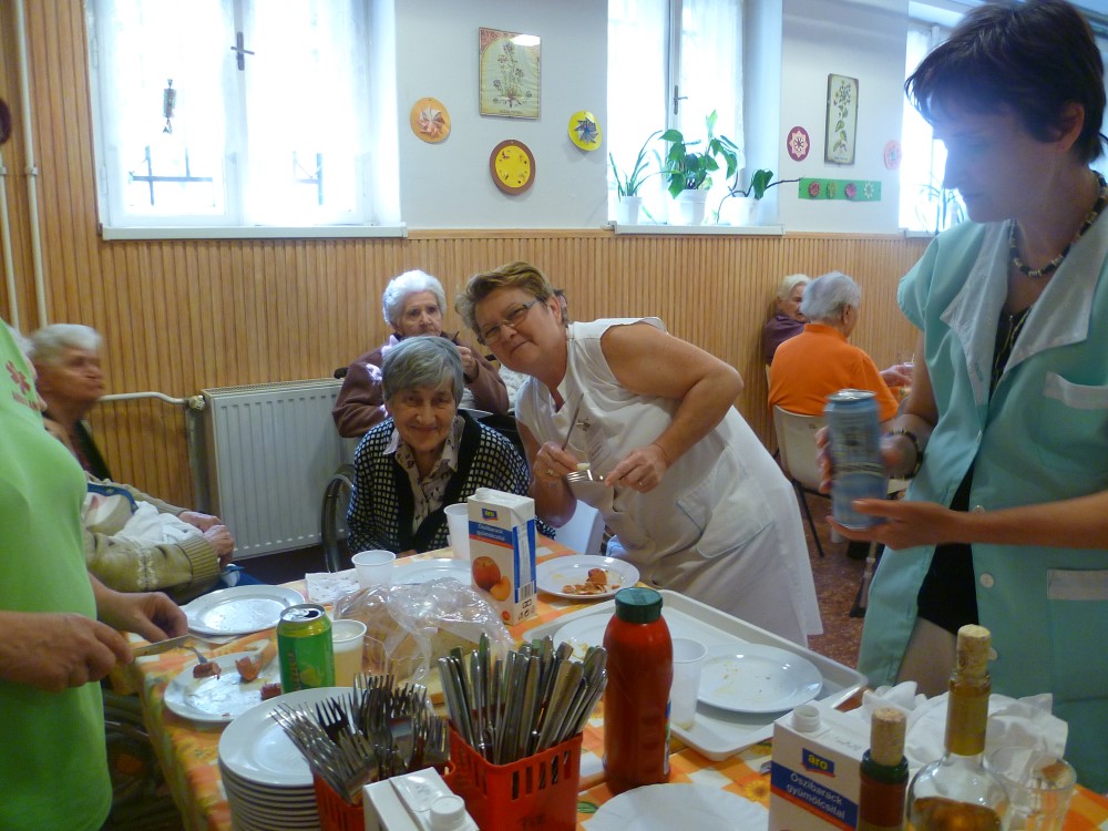 Minden évben megrendezzük Otthonunkban a majálist. Hagyományaink szerint a sült virslit, sült kolbászt hideg sörrel, hűvös fröccsel öblítették le lakóink. A jó hangulatról és a talpalávalóról - gyakori vendégünk - Mihály Miklós pékmester gondoskodott. A borús, hűvös idő miatt szokásunktól eltérően az ebédlőben mulattunk.