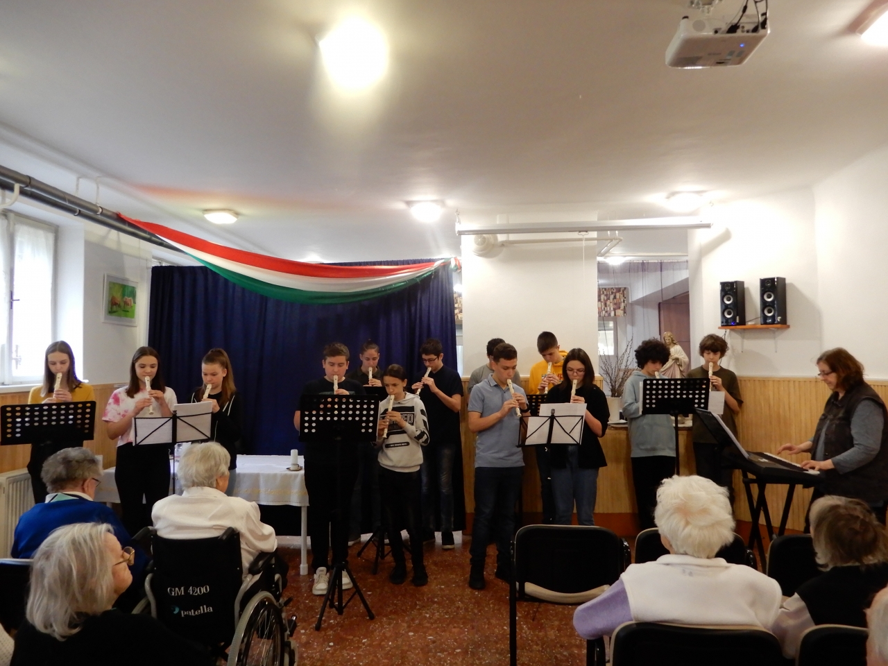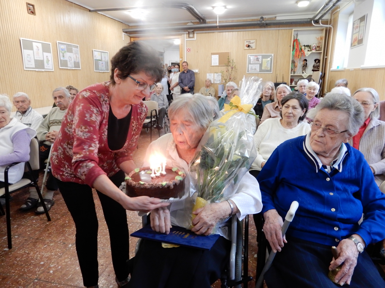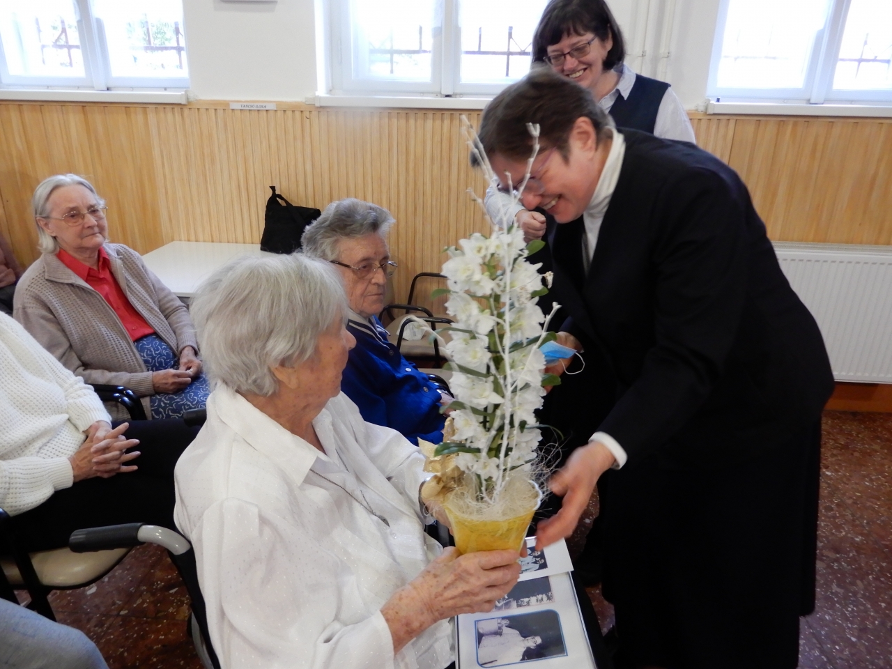 Április 8-án ünnepeltük a Jézus Szíve Társaságával egyidős Margit testvér 101. születésnapját. Először a Petőfi Sándor Általános Iskola Zenetagozatának 8. osztályos tanulói ajándékozták meg egy bensőséges és színvonalas összeállítással, majd Sarlós Imre alpolgármester úr fejezte ki nagyrabecsülését születésnapi torta, virág, emléklap és kedves köszöntő szakvak kíséretében. Ezt követően Suller Melinda SJC általános elöljáró testvér köszöntötte Őt Társaságunk tagjai nevében, és a virág mellé régi kedves emlékeket felidéző fotókat adott ajándékul. Az ünnepi szentmisét Benke István atya mutatta be, ahol Margit testvérrel együtt ünnepeltek munkatársaink, lakóink, a péceli és a kecskeméti testvérközösség tagjai is.