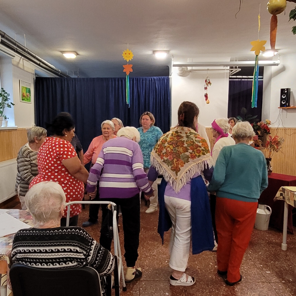 A jó hangulatú együttlét közös énekléssel folytatódott, majd lakóink és munkatársaink körtánca következett.