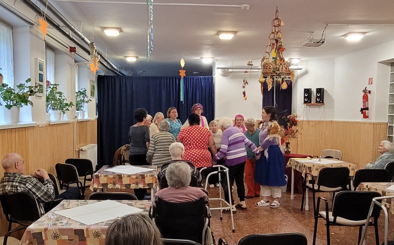 Lakóink először Lev Tolsztoj: „Hogyan osztotta el a paraszt a libákat” című meséjében gyönyörködhettek, melyet munkatársaink játszottak el számukra. Ezután elhangzott Titi Hajnalka: Szent Márton legendája című verse.