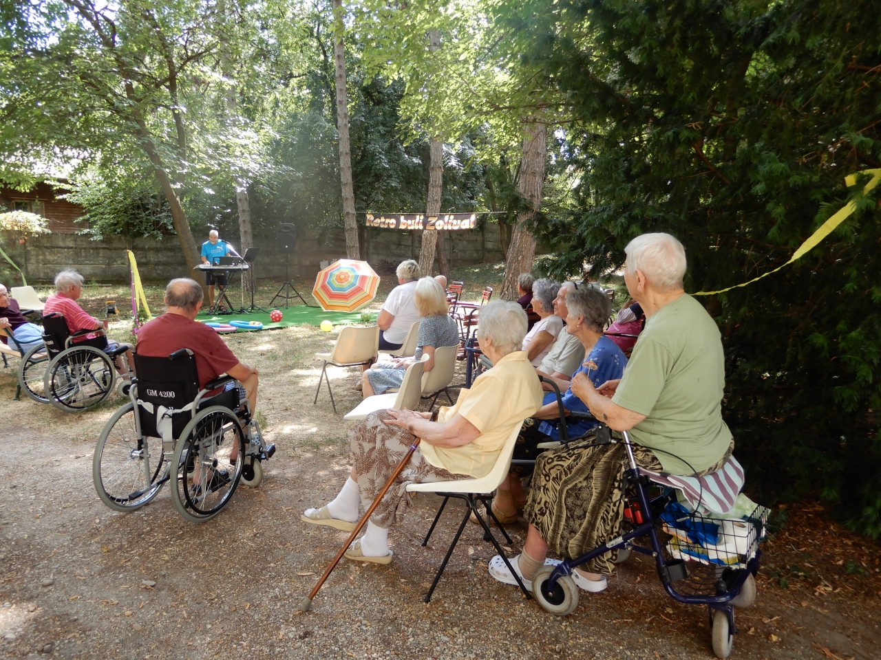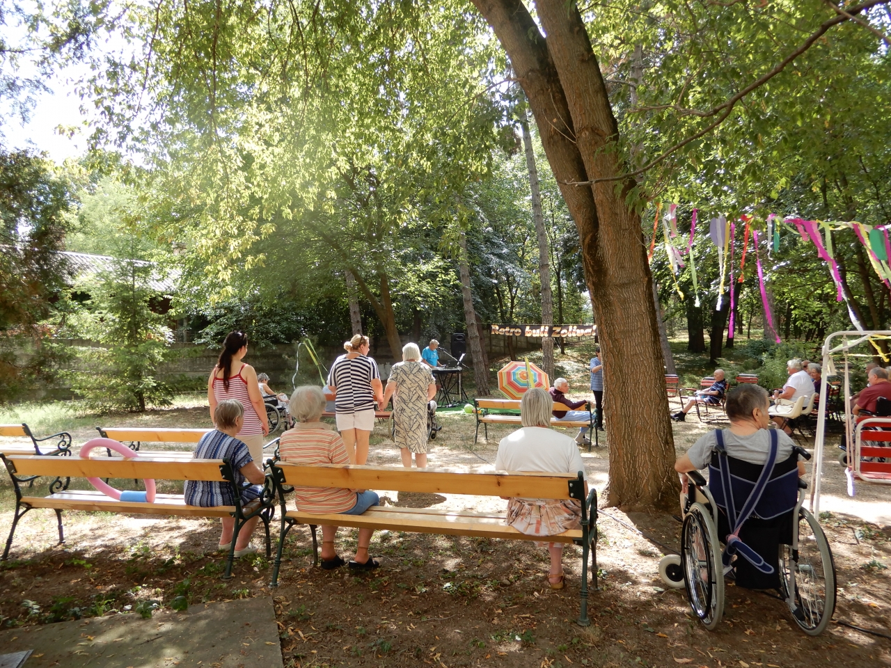 Hagyományainkhoz híven Maderspach Zoltánt hívtuk meg, hogy a jó hangulatról gondoskodjon. Munkatársaink a vidám díszítéssel a strandok hangulatát varázsolták kertünkbe. A tánc, vagy a zenehallgatás közben elfáradt lakóinkat pogácsával, frissítőkkel, fagyival kínáltuk.